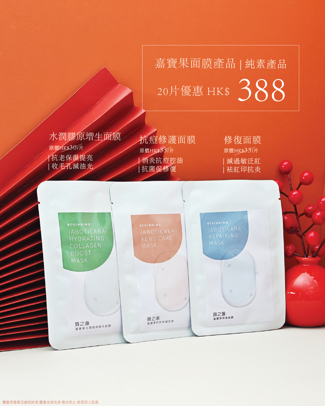 嘉寶果面膜自由搭配活動,選擇3款面膜共20片,下單請於備註欄註明所選產品及對應數量: